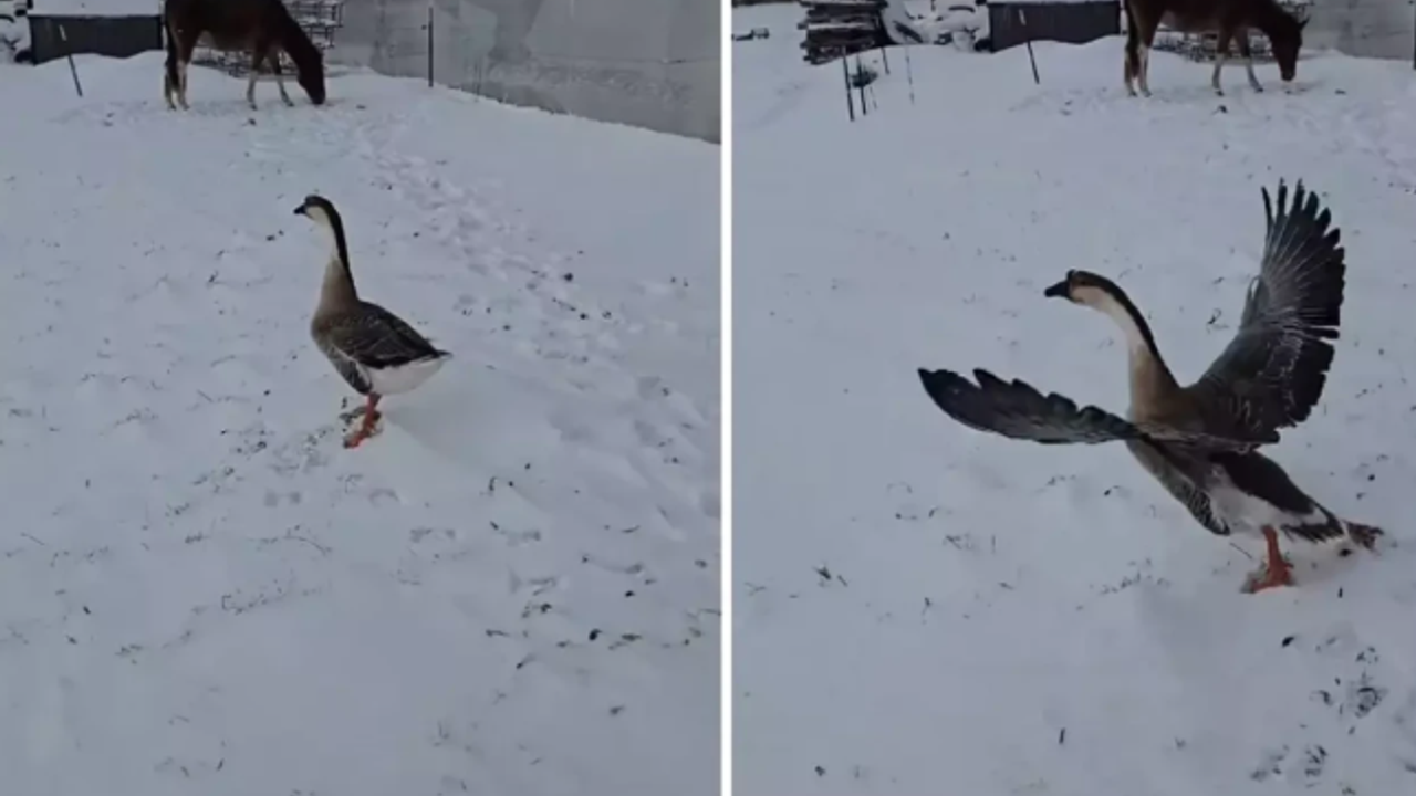 Kaz pazarından 3.500 TL’ye kaz satın alan bir vatandaş, hayvanı bahçeye bıraktı. Ancak kaz, kısa süre içinde havalanarak göçe katıldı. Vatandaş, aldığı kazın gözleri önünde uçup gitmesiyle şaşkınlık yaşadı.