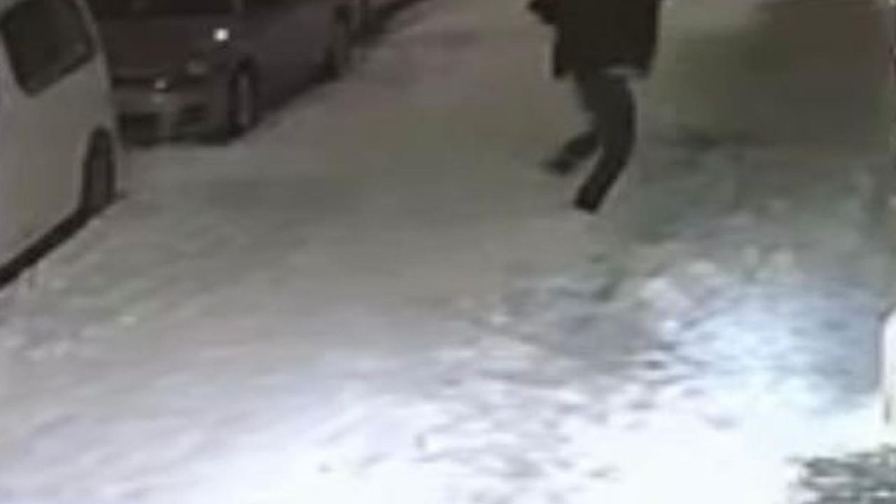 Öte yandan, çatıdan kar düştüğü ve gencin kaçmaya çalıştığı anlar ise güvenlik kamerası kayıtlarına yansıdı