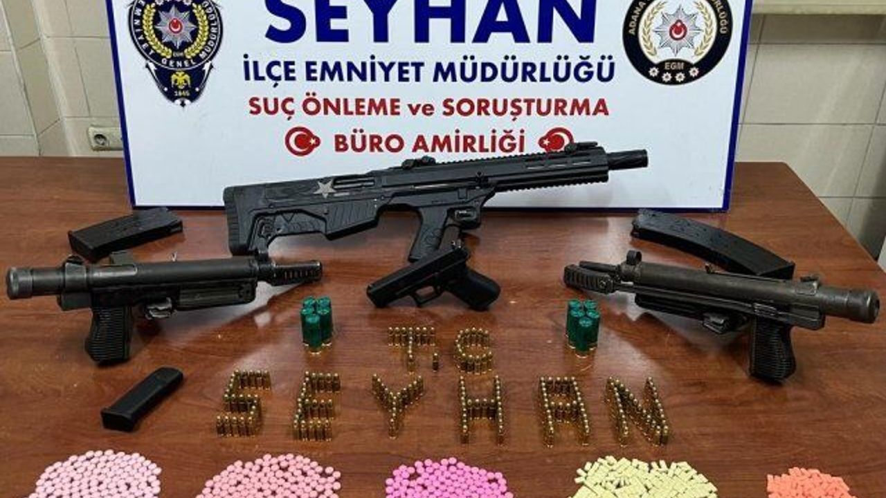 Seyhan İlçe Emniyet Müdürlüğüne bağlı Suç Önleme ve Soruşturma Büro Amirliği ekipleri, dün öğle saatlerinde Dağlıoğlu Mahallesi'ndeki bir evin kurşunlanmasıyla ilgili çalışma başlattı. Ekipler, motosikletli ve kar maskeli 2 şüphelinin, otomatik tabancayla bir eve ateş açıp kaçtığını belirledi. Bölgedeki güvenlik kameralarını inceleyen polis, silahı kullanan şüphelinin B.B. olduğunu tespit etti. Adresi belirlenen B.B., polisin baskınıyla gözaltına alındı. Öte yandan polis, evinde çok sayıda silah ve mermi bulunduğu belirlenen M.B.'yi de eş zamanlı baskında yakaladı. Şüphelilerin evlerinde yapılan aramalarda 2'si otomatik 3 ruhsatsız tabanca, ruhsatsız pompalı tüfek, 825 uyuşturucu hap ve 239 mermi ele geçirildi.