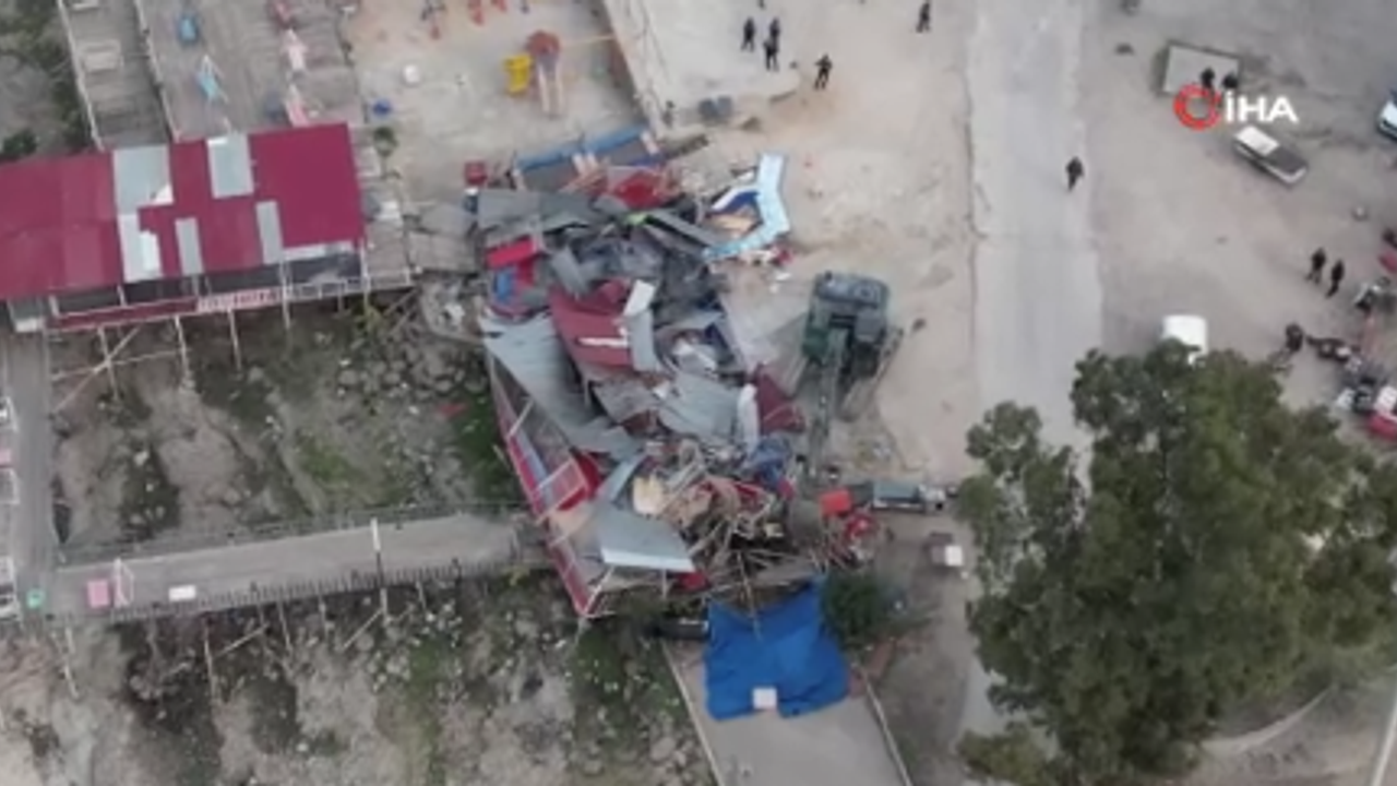 Bölgede alınan tedbirlerle yıkımı sürüyor.