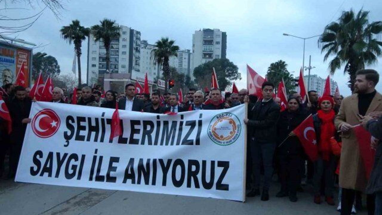 Adana'nın Kozan ilçesinde toplanan binlerce vatandaş, şehitler için Türk bayrakları ile yürüyüş yaptı.