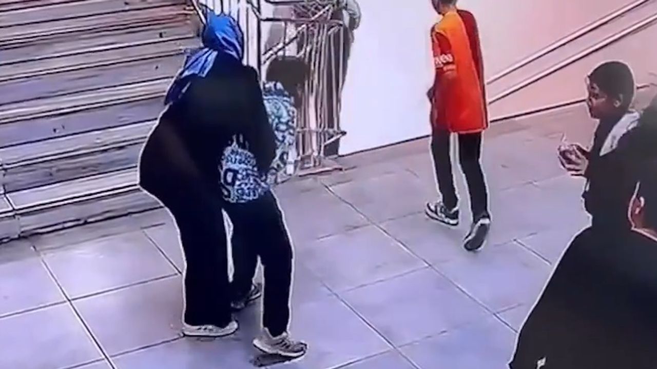 Nöbetçi öğretmenin Heimlich manevrası uyguladığı anlar, okulun güvenlik kamerasınca görüntülendi.