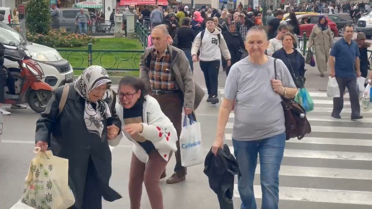 Lodostan dolayı annesiyle birlikte tutunarak ilerleyen kıza ise, vatandaşların da destek olmasıyla yolun karşısına geçti.
