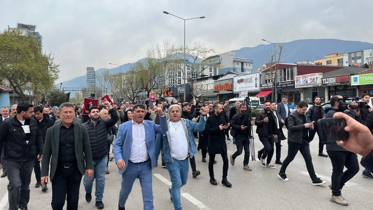 Eylem sırasında toplanan grup sık sık "Bursa'nın başkanı Mustafa Bozbey" sloganları atarak destek gösterisinde bulundu.