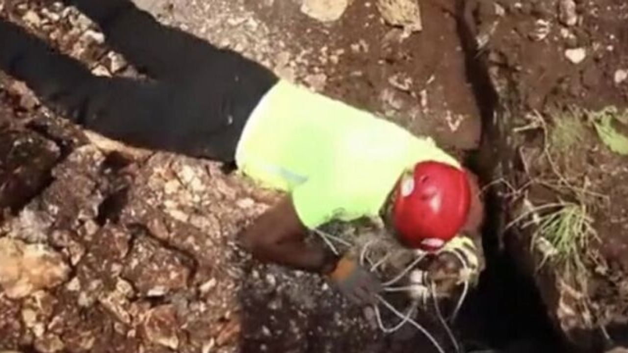 Kendi imkanıyla köpeği bulunduğu yerden çıkaramayan Gök, durumu itfaiyeye bildirdi.Adrese giden ekipler, kepçeyle çukuru genişletip yerin yaklaşık 2 metre altındaki kayalıkların arasından ip yardımıyla köpek yavrusunu kurtardı.⠀