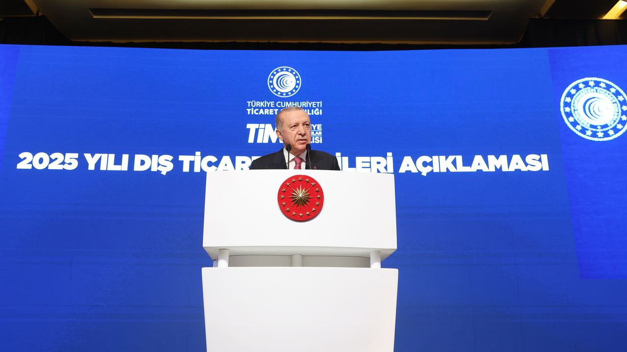 Cumhurbaşkanı Erdoğan, "Dış ticaret rakamlarımızın objektif analizini yaparken şu noktanın göz ardı edilmemesi gerektiği kanaatindeyim: 2025 yılı küresel ticarette belirsizliklerin tırmandığı ve korumacılığın belirgin biçimde yükseldiği bir dönem olmuştur. Zayıf dış talep, yakın coğrafyamızda süregelen savaşlar, iç karışıklıklar ve jeopolitik gerilimlere tarife artışlarının yol açtığı sorunlar eklenmiştir. Türkiye tüm bunlara ilave olarak, dolaylı maliyeti 150 milyar doları bulan 6 Şubat depremlerinin etkileriyle de mücadele etmiştir. Şunu burada büyük bir gururla söylemek isterim. Dünyada pek az ülkenin altından kalkabileceği bu sınamaların üstesinden alnımızın akıyla geldik. Milletimize meydanlarda verdiğimiz sözleri tuttuk ve 455 bininci deprem konutumuzu afetzede kardeşlerimize önceki hafta Hatay'da teslim ettik. Ahdine ve kavline sadık bir iktidar olarak hamdolsun depremzedelerimize mahcup olmadık. Tüm karamsar senaryolara, tüm karalama kampanyalarına rağmen, yatırım, istihdam, üretim ve ihracat odaklı büyüme stratejimizin çok şükür meyvelerini toplamaya devam ediyoruz” diye konuştu.