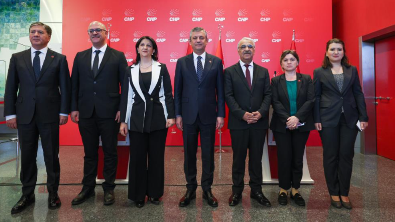Halkların Eşitlik ve Demokrasi Partisi (DEM Parti) İmralı Heyeti üyeleri DEM Parti Van Milletvekili Pervin Buldan, DEM Parti Şanlıurfa Milletvekili Mithat Sancar ve avukat Faik Özgür Erol CHP Genel Başkanı Özgür Özel'i ziyaret etti.