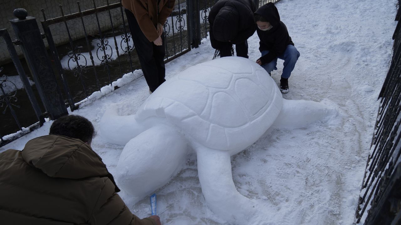 "4 saatlik çalışmayla kardan kaplumbağa yaptık"