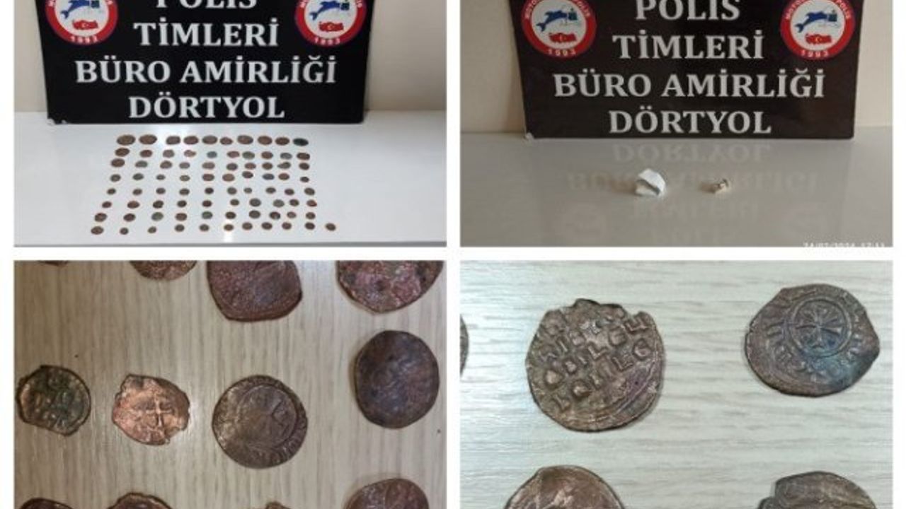 Hatay'ın Dörtyol ilçesinde gerçekleştirilen tarihi eser kaçakçılığı operasyonunda 81 adet sikke ele geçirildi.
