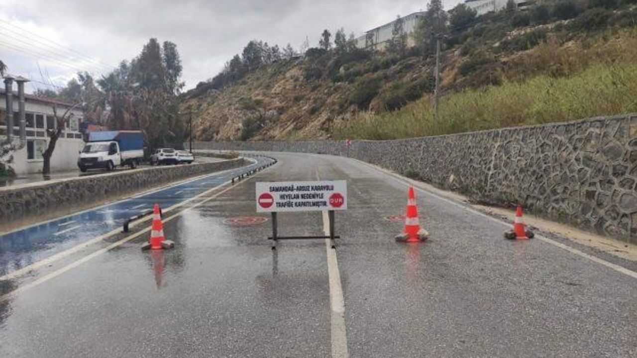 Hatay'da etkili olan sağanak, su baskınlarına ve mezarlık duvarının çökmesine neden olurken, meydana gelen heyelan nedeniyle Samandağ-Arsuz sahil yolu ulaşıma kapandı.
