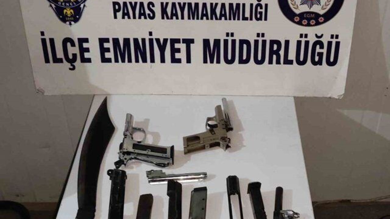 Payas İlçe Emniyet Müdürlüğüne bağlı Suç Önleme ve Soruşturma Büro Amirliği ekipleri tarafından Payas ilçesine bağlı Beyazıt Mahallesi'nde bir iş yerine baskın düzenledi. İş yerinde detaylı inceleme ve aramalar yapıldı. Yapılan aramada, 2 silah kabzesi, 3 namlu, 3 sürgü, 4 şarjör ve 1 pala ele geçirildi.