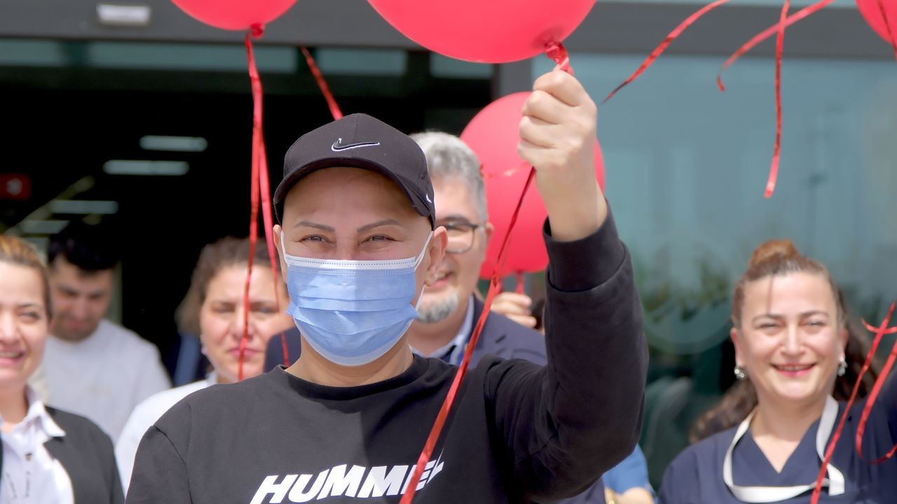 Mersin Üniversitesi Hastanesi'nde kanser tedavisi başarıyla tamamlanan hastane personeli kadın, çalışma arkadaşlarınca gökyüzüne bırakılan balonlarla taburcu edildi. Mersin Üniversitesi Hastanesi'nde kanser tedavisi başarıyla tamamlanan hastane personeli kadın, çalışma arkadaşlarınca gökyüzüne bırakılan balonlarla taburcu edildi.