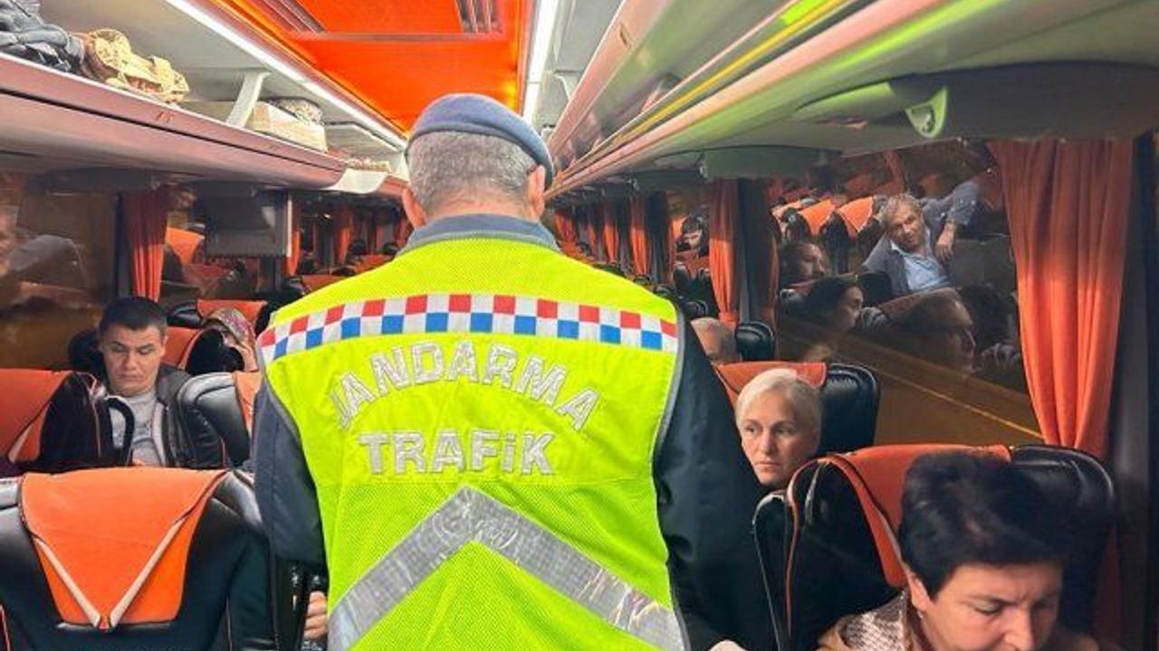 Antalya'da jandarma ekiplerince şehirlerarası yolcu otobüslerinde emniyet kemeri kontrolü yapıldı.
