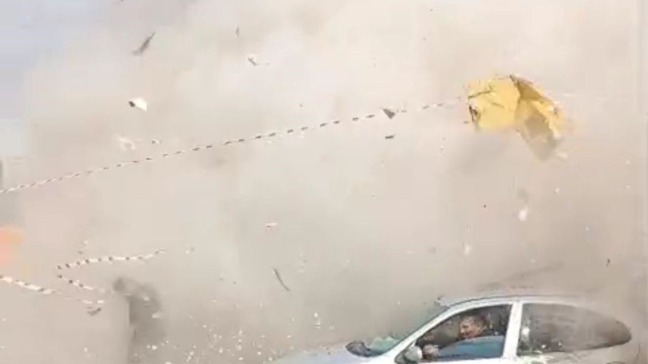 Görüntülerde binanın yıkıldığı sırada araçların yoldan geçtiği ve zarar gördüğü insanların kaçıştığı gözlemlendi.