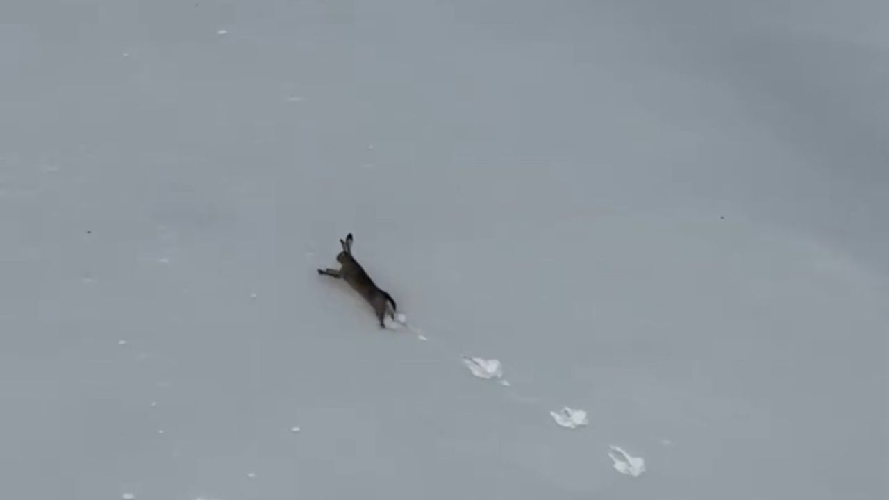 Karabük'ün 2 bin rakımlı Keltepe Kayak Merkezi, hafta sonu hizmete açıldı. Tesisi ziyaret eden ve teleferiğe binen bir vatandaş, kayak pistleri yakınında koşan yaban tavşanını fark etti. O anlar vatandaş tarafından cep telefonu kamerasıyla görüntülenirken tavşan bir süre sonra ağaçlık alana doğru yönelerek gözden kayboldu.