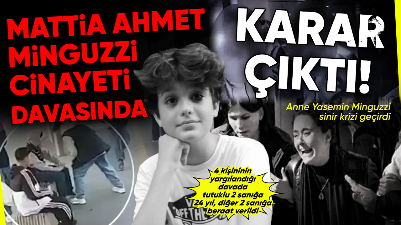 Kadıköy'de, 24 Ocak 2025 tarihinde 15 yaşındaki Mattia Ahmet Minguzzi'nin pazarda bıçaklanarak öldürülmesine ilişkin tutuklu sanıklar B.B. ve U.B.'nin 'çocuğa karşı kasten öldürme' suçundan 24'er yıla kadar, sanıklara yardım eden M.A.D. ve A.Ö.'nün ise 20 yıla kadar hapis talebiyle yargılandığı dava karara bağlandı. Kartal Anadolu 2. Çocuk Ağır Ceza Mahkemesi'nde görülen duruşmaya, 4 tutuklu sanık Ses ve Görüntülü Bilişim Sistemi (SEGBİS) ile bağlanırken, Minguzzi ailesi ve taraf avukatları salonda hazır bulundu.