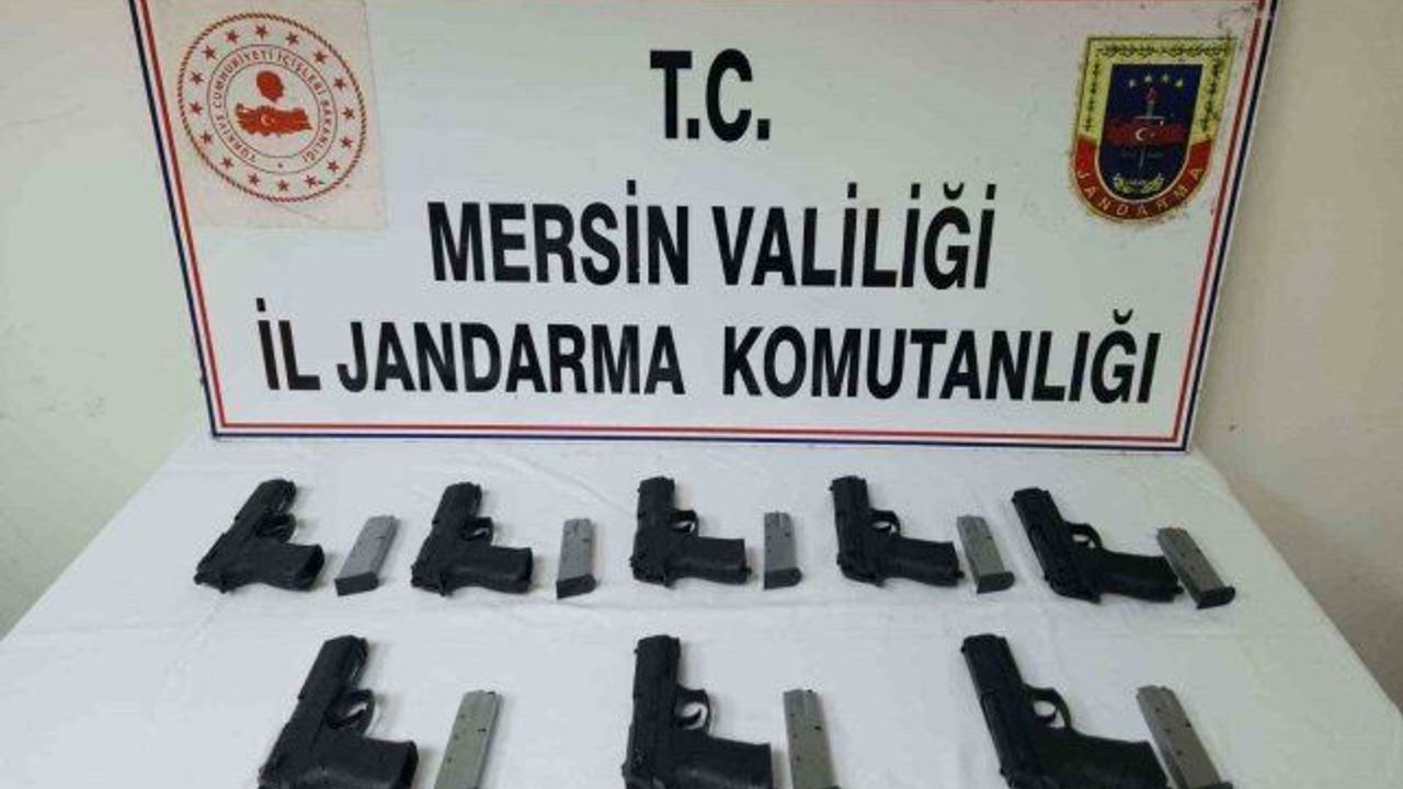 Mersin'de bir adrese düzenlenen operasyonda kaçak 10 tabanca ele geçirilirken, 2 şüpheli tutuklandı.