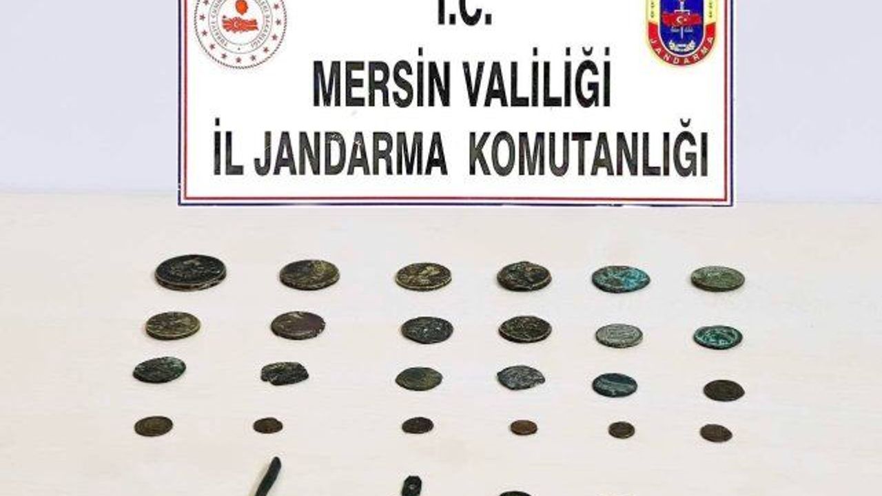 Mersin'de tarihi eser kaçakçılığına yönelik düzenlenen operasyonda 2 şüpheli gözaltına alınırken, Roma ve Bizans dönemlerine ait olduğu değerlendirilen 24 sikke, 2 yüzük ile 2 tarihi obje ele geçirildi.
