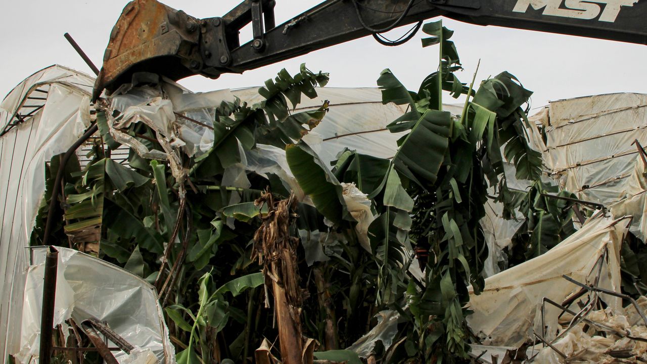 Ekipler, 34 bin 401 metrekarelik alana yayılan ev ve seraların yıkımına iş makineleriyle başladı.