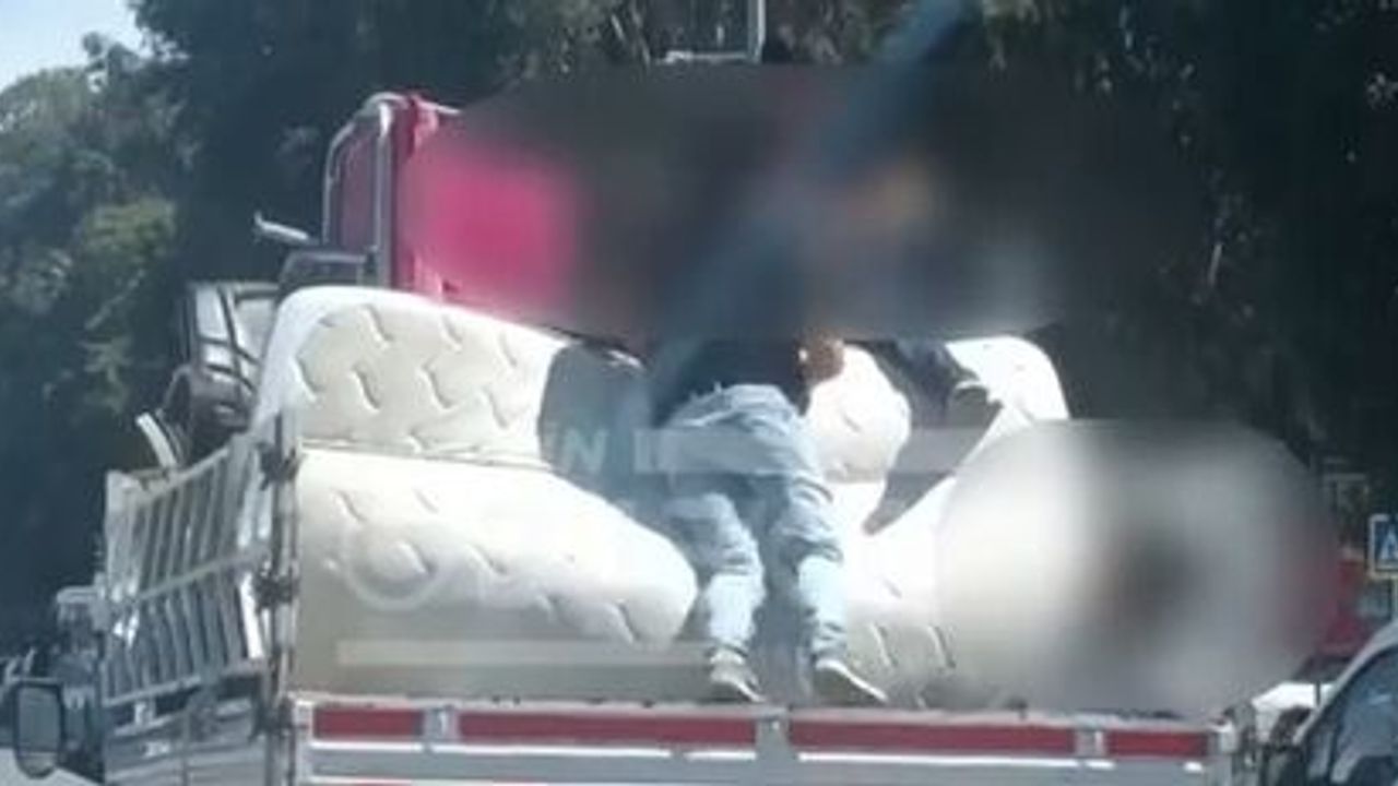 Görüntülerin, aynı güzergahta ilerleyen başka bir araçtaki sürücü tarafından cep telefonu kamerasıyla kaydedildiği öğrenildi. Yoğun trafiğin bulunduğu ana arterde ilerleyen araçtaki bu tehlikeli yolculuk, hem araçtakiler hem de diğer sürücüler için büyük risk oluşturdu.