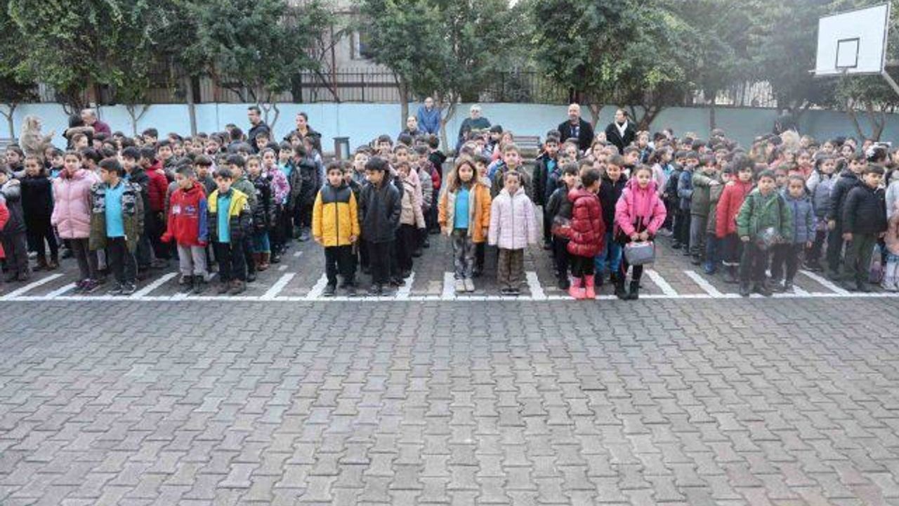 Hatay'ın İskenderun ilçesinde ilkokul öğrencileri, şehit olan askerler için saygı duruşunda bulunarak, İstiklal Marşı okudular.