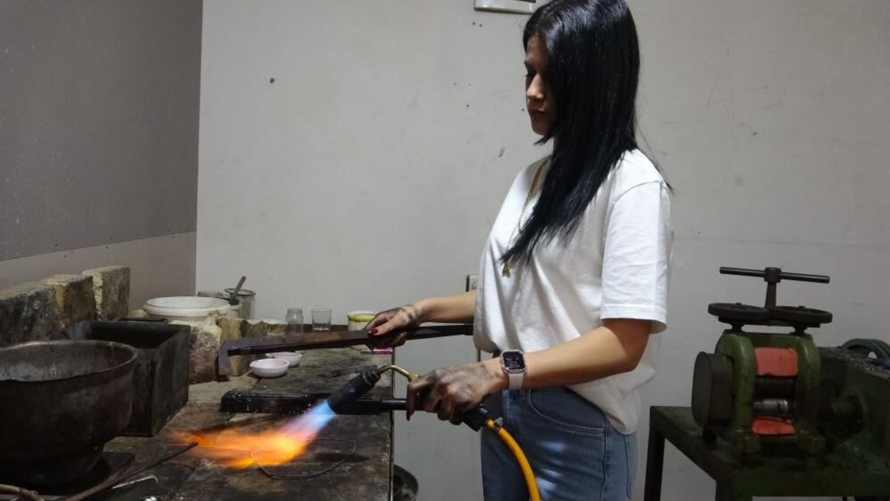 Mersin'de yaşayan 21 yaşındaki Aleyna Ülger, başta 'yapamazsın' denilerek karşılandığı kuyumculuk mesleğinde kısa sürede ustalığa yükseldi. Yüksek sıcaklıkta altın eritip işleyen Ülger, hurda ve külçe altınları kolye, bilezik, küpe ve yüzük gibi takılara dönüştürüyor. Arkadaşının yönlendirmesiyle 3 yıl önce Akdeniz ilçesindeki bir kuyum atölyesinde çırak olarak mesleğe başlayan Ülger, zamanla altın işlemeciliğinin en zor alanlarından biri olan sadekarlığı öğrenerek ustalığa kadar yükseldi. Her sabah atölyede yüksek sıcaklıkta çalışan makinenin başına geçen genç kadın, hurda ve külçe altınları eriterek uzun ve zahmetli işlemlerden geçiriyor.