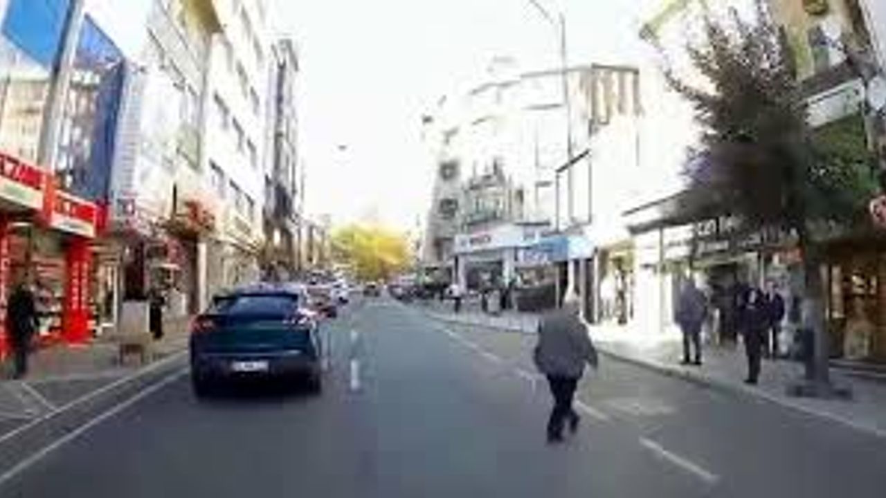 Hükümet Caddesi’nde otomobiliyle seyir halinde olan A.K., aşırı hız yapıp, makas atmaya başladı. Bu sırada yolun karşısına geçmek isteyen kişiyi son anda fark eden A.K. otomobilin direksiyonunu sağa kırdı. Yaya, ezilmekten son anda kurtulurken, o anlar başka bir aracın kamerasına yansıdı.