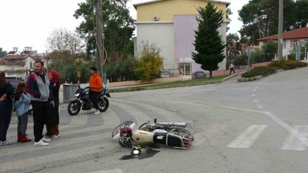 Antalya'nın Manavgat ilçesinde kavşakta motosiklet ile otomobilin çarpışması sonucu meydana gelen trafik kazasında motosiklet sürücüsü yaralandı.