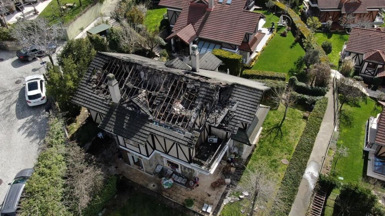 Öte yandan, ünlü oyuncunun çıkan yangında küle dönen çatı katı, havadan görüntülendi.
