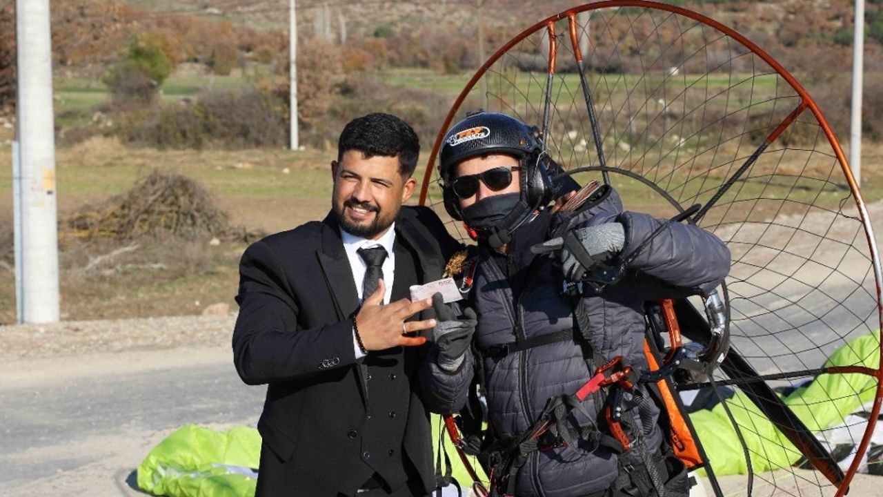 Damat Erdoğan Çiyrak, gelin arabasının arkasına "Gökte ararken yerde buldum" yazdırarak hem paramotor tutkusuna hem de evlilik mutluluğuna esprili bir gönderme yaparken, kendisinin de bir paramotor pilotu olduğunu ve arkadaşlarının yaptığı sürpriz karşısında çok mutlu olduğunu söyledi. Paramotor Eğitmeni Metin Pehlivan'da damat olan arkadaşlarını düğününde yalnız bırakmamak için 5 kişilik bir ekiple İzmir'den geldiklerini söyledi.