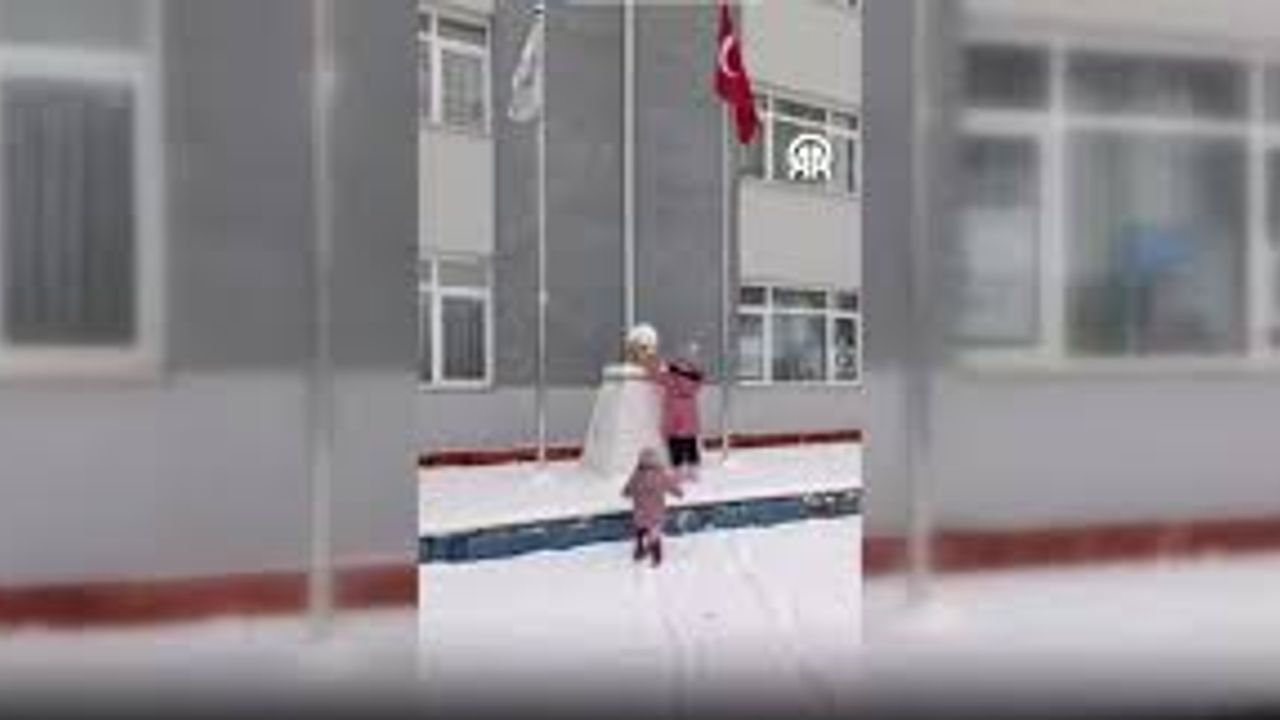 İlçede etkili olan kar yağışının ardından Zeynep (9) ve kardeşi Nisa (3) Duman, kar topu oynamak için Kocaali Anadolu İmam Hatip Lisesi'nin bahçesine gitti.