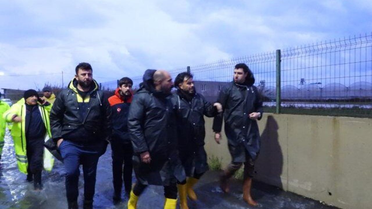 Hatay'ın Samandağ ilçesinde etkili olan yağış sonrası yollar göle dönerken ekipler çalışmalarını aralıksız sürdürüyor.