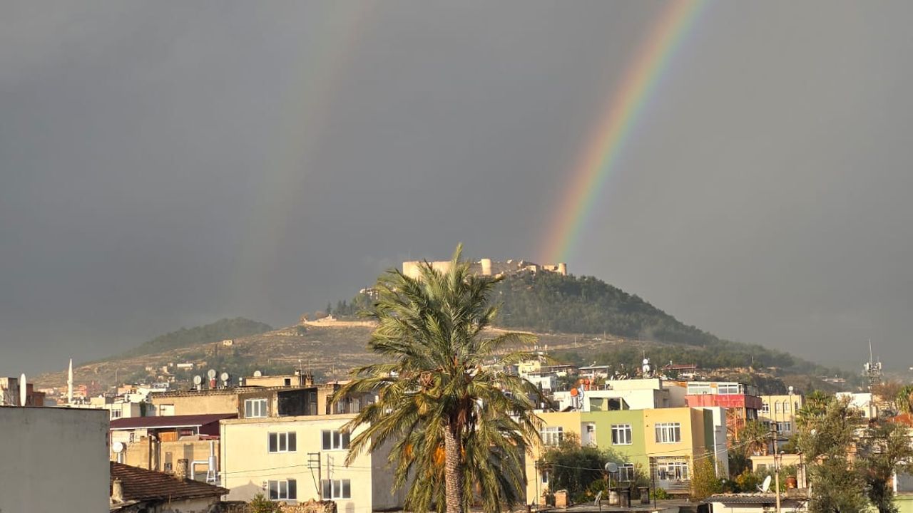 Mersin Silifke’nin simgesi tarihi kale, bugün gökyüzünde beliren çift gökkuşağı ile büyüleyici bir manzaraya sahne oldu. Yağmur sonrası ortaya çıkan doğa olayı, kaleyi ziyaret eden vatandaşların ilgisini çekti. Renk cümbüşü karşısında birçok kişi telefonlarına sarılarak bu anı ölümsüzleştirdi.