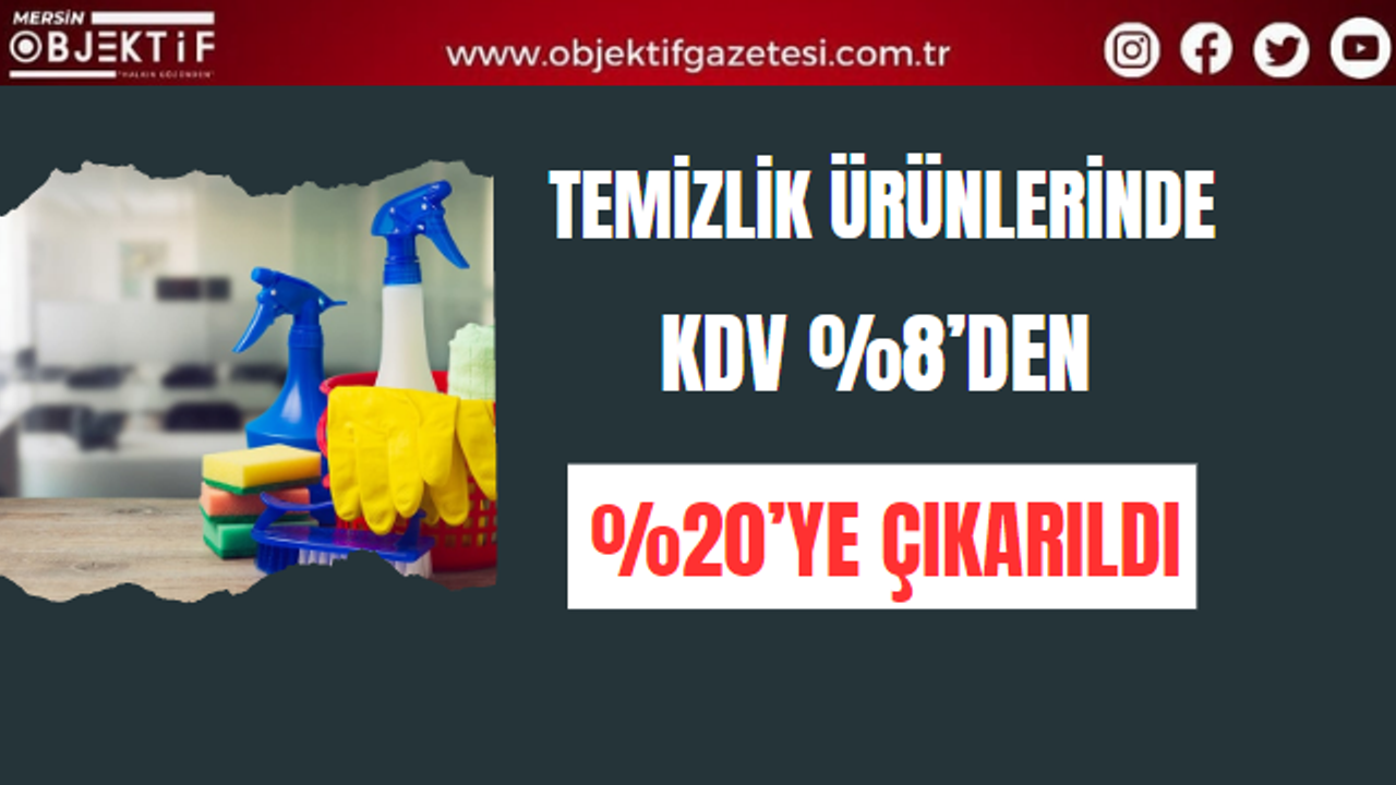 Sabun, şampuan, deterjan, dezenfektan, ıslak mendil, tuvalet kağıdı, kağıt havlu, peçete vb. temizlik ürünleri için KDV %8’den %20’ye çıkarıldı.