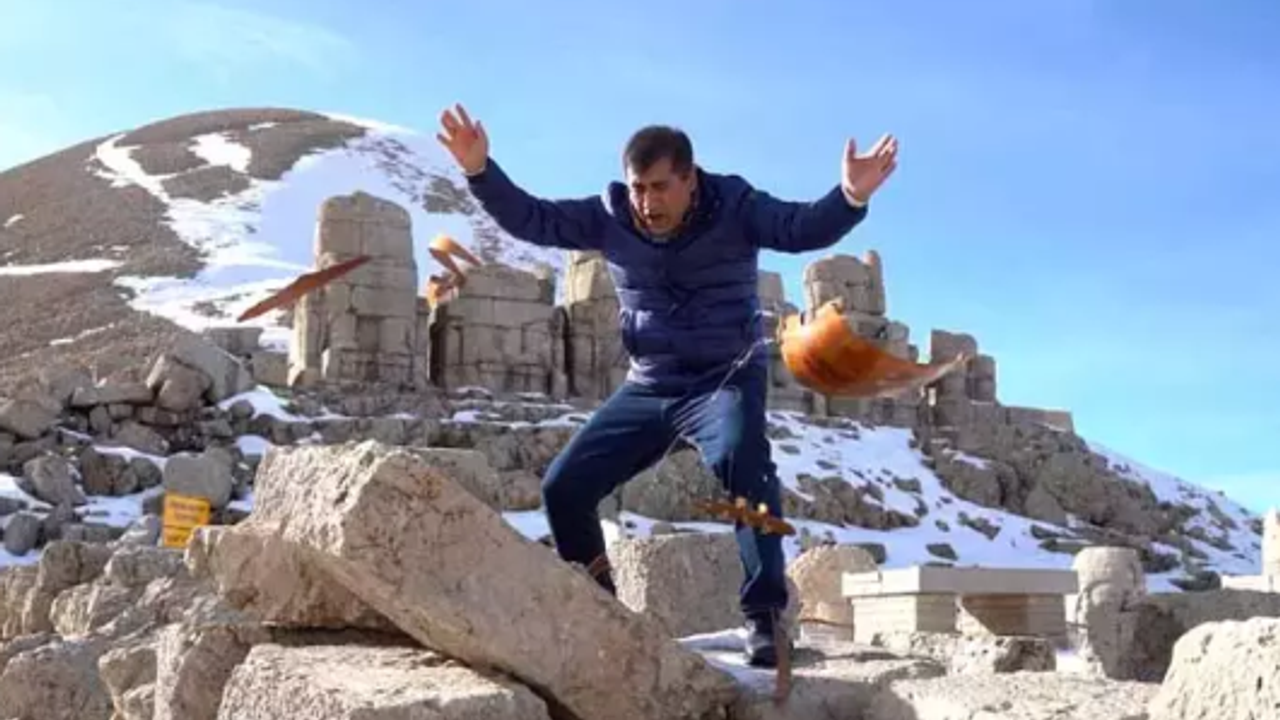 Nemrut Dağı'na çıkan Aydın Aydın, yapay zekanın insana ait bütün bilgileri toplayıp insana karşı kullandığını, birçok mesleğin yok olacağını, müzik sektörüne de ciddi zarar vereceğini belirterek, sazını taşa vurup kırdı.