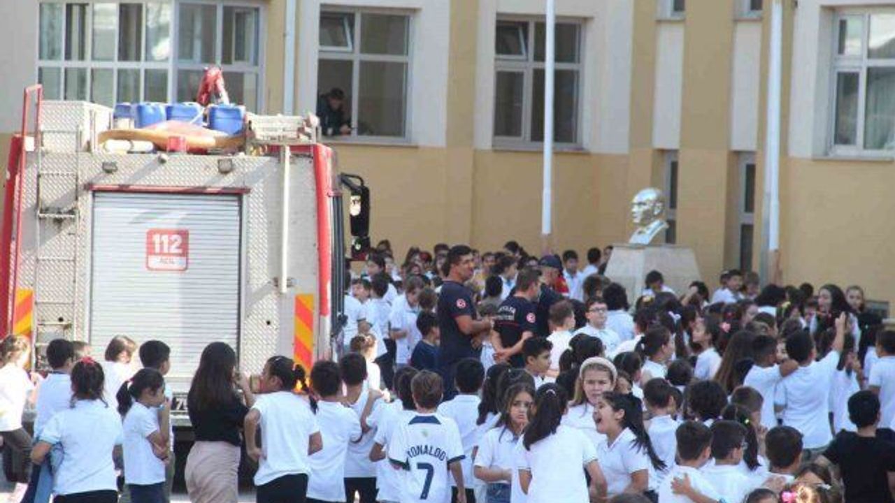 Antalya'da bir ilkokulun klima ünitesinden çıkan yangın öğretmenler tarafından söndürüldü. Kontrol amaçlı okula gelen itfaiye ekiplerine öğrencilerin ilgisi büyük oldu.