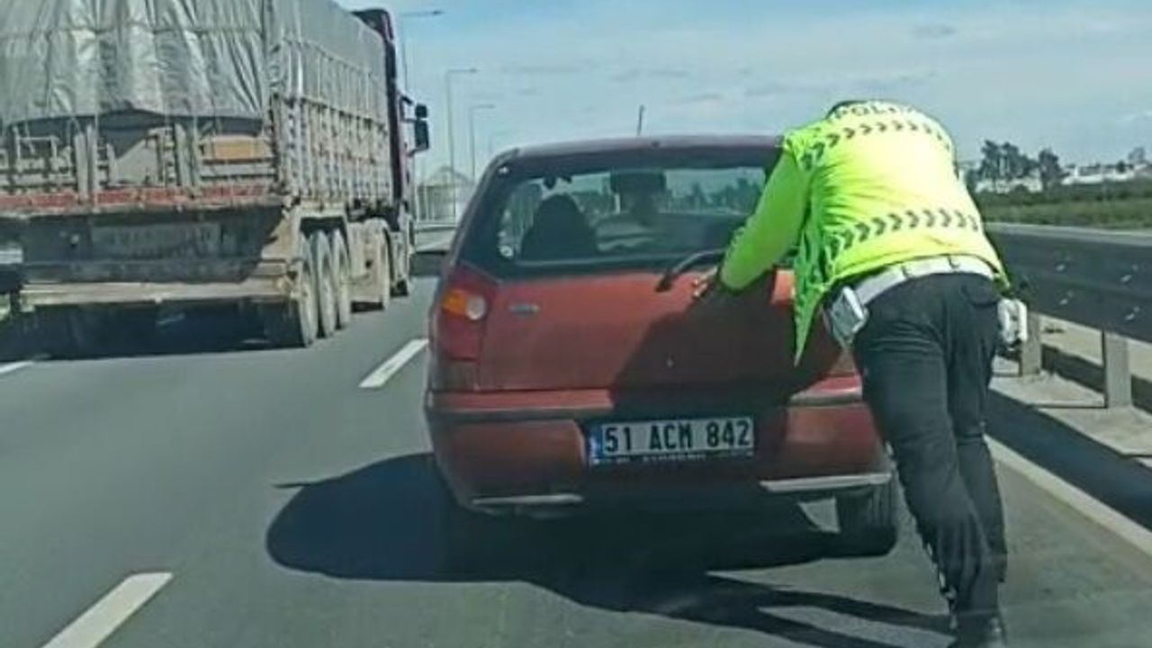 İlçedeki D-400 kara yolunda ismi öğrenilemeyen kadın sürücünün yönetimindeki otomobil, arıza yaparak durdu. Çevrede görev yapan bir trafik polisi, yol güvenliğini sağlamak için otomobili iterek üst geçidin sonuna ulaştırdı. Trafik polisinin aracı ittiğini gören diğer sürücüler, korna çaldı. O anlar çevredekiler tarafından cep telefonuyla görüntülendi.