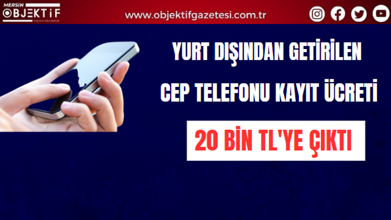 Yurt dışında getirilen cep telefonu kayıt ücreti 20 bin TL'ye çıktı. Resmi gazete'de yayımlanan kararla, yurt dışından getirilen cep telefonu kayıt ücreti 6091 TL'den 20 bin TL'ye çıkarıldı.
